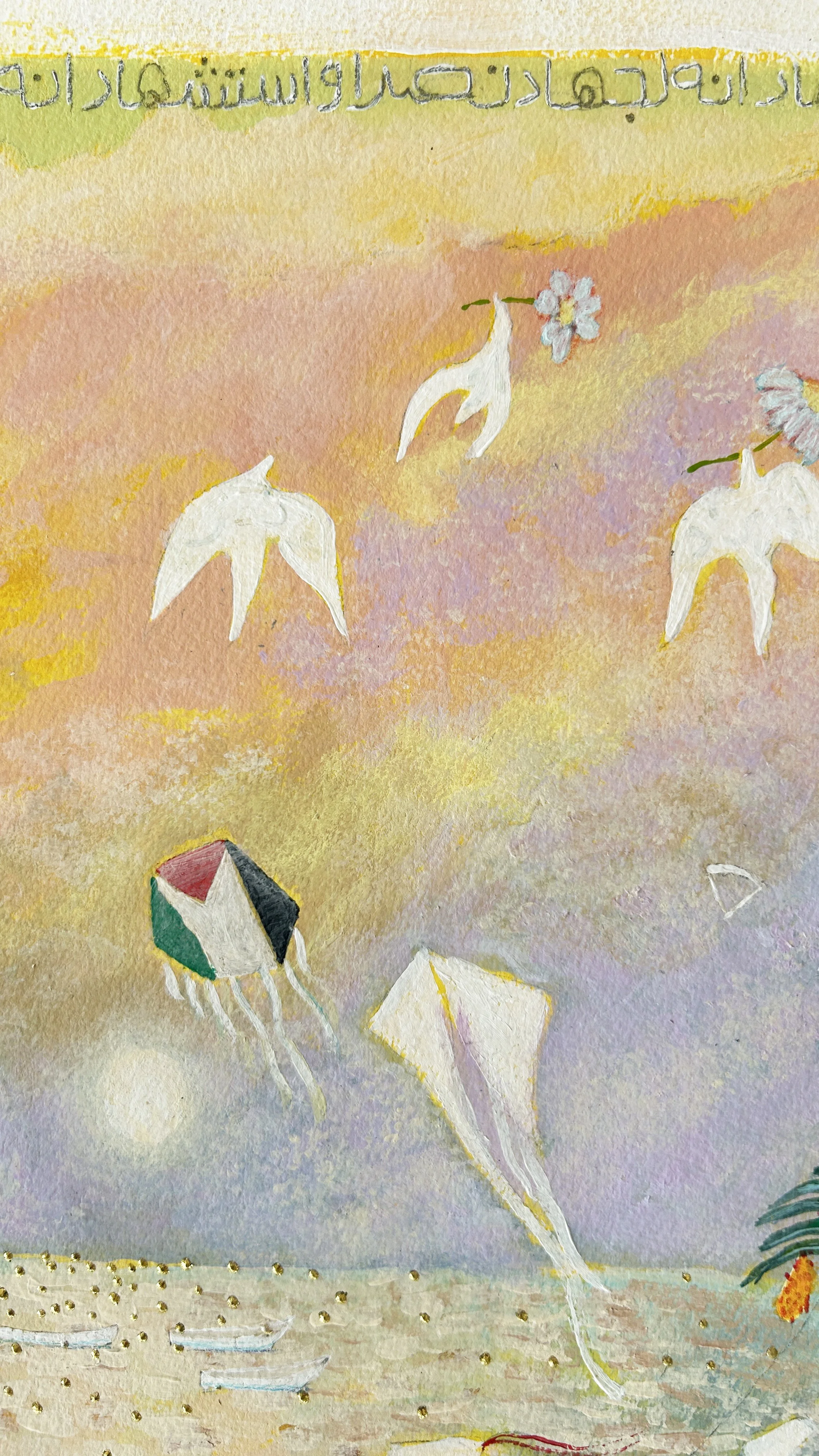 This work was created to commemorate a beautiful moment of resistance by the martyred freedom fighter Ahed Abu Sittah
